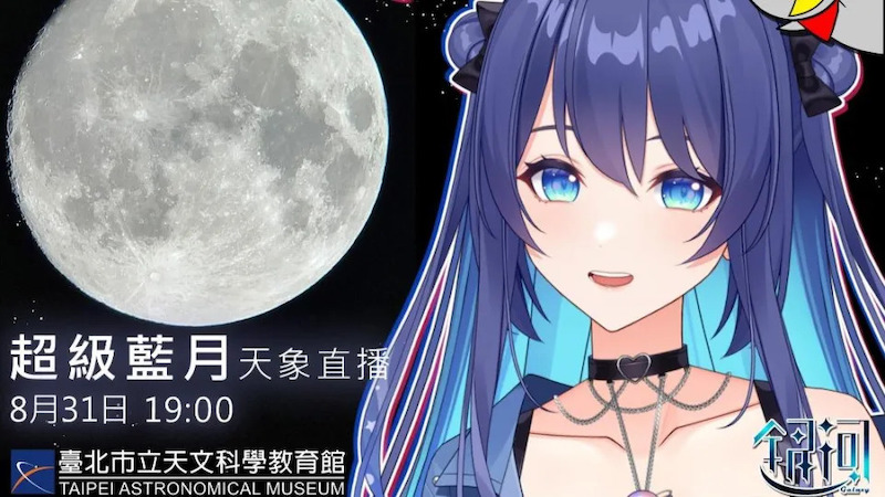 台北天文館會在今晚7點至9點於YouTube頻道進行直播,除了透過專業望遠鏡將清晰的月球畫面提供給大眾欣賞外,還由天文館解說員與Vtuber虛擬偶像「銀河Galaxy」在直播間一起為大家介紹有關「超級藍月」的相關知識,如果你的所在地沒辦法清楚看到「超級藍月」,可以到台北市立天文館的YouTube直播觀賞~