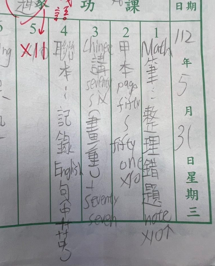 晶晶體?國小兒聯絡簿寫「訂簽Chinese筆」 家長怒轟:學校要求的