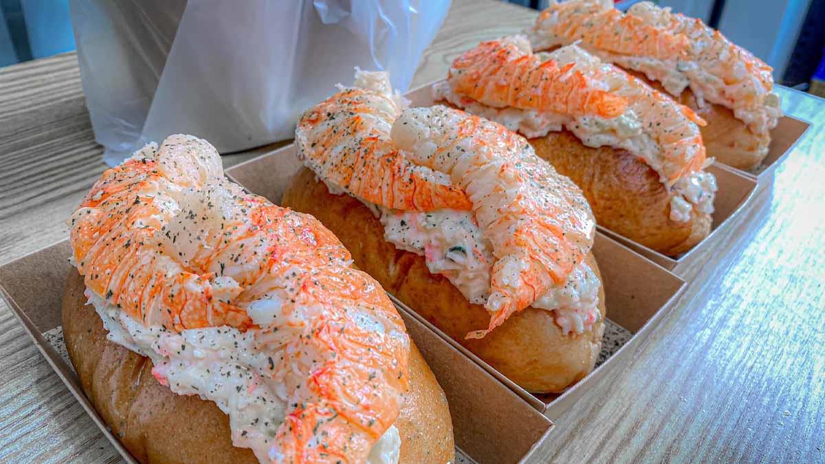 這一販售「龍蝦沙拉堡」的小攤販,在麥當勞推出螯龍蝦堡之前就已經存在,是以整隻青龍蝦為特色,將龍蝦切半後搭配加奶油烤過的麵包、天婦羅脆花和沙拉,一個4盎司大小,份量和口感都不輸給大品牌,價格為460元。這樣的價位沒有影響消費者的熱情,仍有大量民眾搶購。