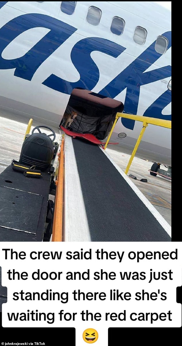 ▼結果事情的發展出乎所有人的預料!當飛機順利降落、貨艙門一開,工作人員震驚地發現,Sputnik竟站在艙門口,宛如等待地勤為牠鋪上紅地毯的大明星!John也非常驚訝,不知道愛犬如何從籠子裡跑了出來。