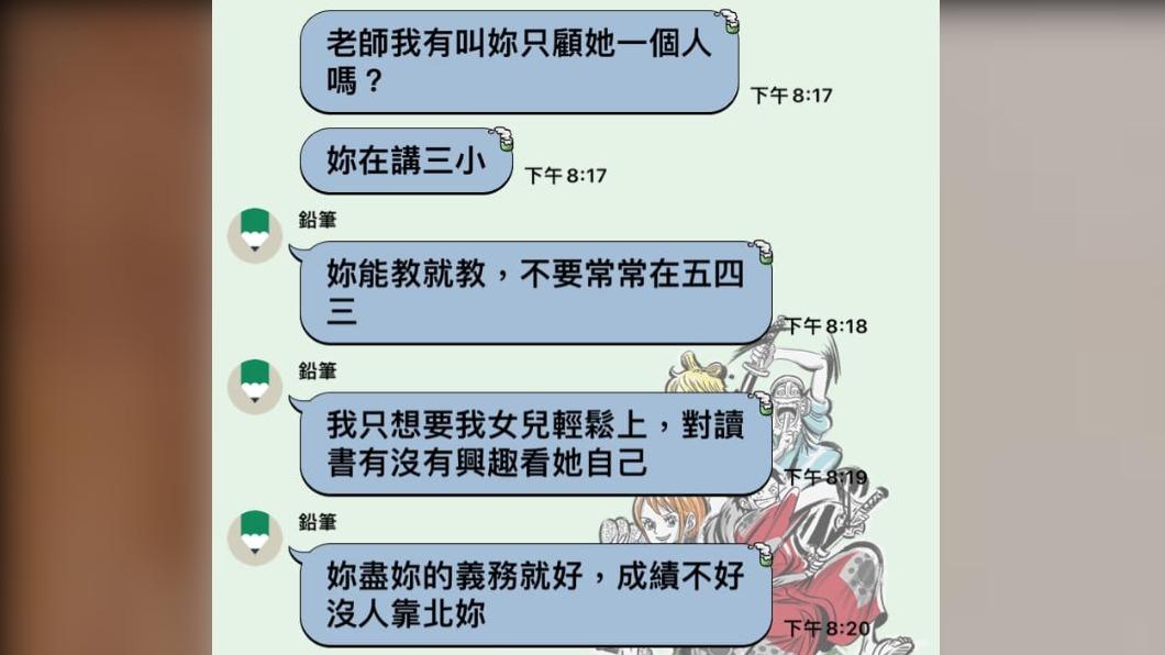▼這名家長直接在群組公審老師,怒斥「老師我有叫妳只顧她一個人嗎?妳在講三小!」、「妳能教就教,不要常常在五四三,我只想要我女兒輕鬆上,對讀書有沒有興趣看她自己,妳盡妳的義務就好,成績不好沒人靠北妳。」原po不禁傻眼,感嘆:「現在老師真難當,在家長群組裡面嗆老師是怕人家不知道你小孩什麼都不會不寫作業?要不要帶去山上野放?夠自由夠開放吧。」