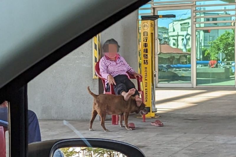 ▼一名網友將這張照片分享到臉書社團「路上觀察學院」,照片中的阿嬤正坐在路邊的椅子上休息,旁邊的狗狗不僅乖乖守在她身旁,還主動充當腳墊,讓阿嬤將腳放在自己的背上。這一幕展現出狗狗的忠誠和貼心,也讓人看到了人與毛孩之間深厚的親密情誼。