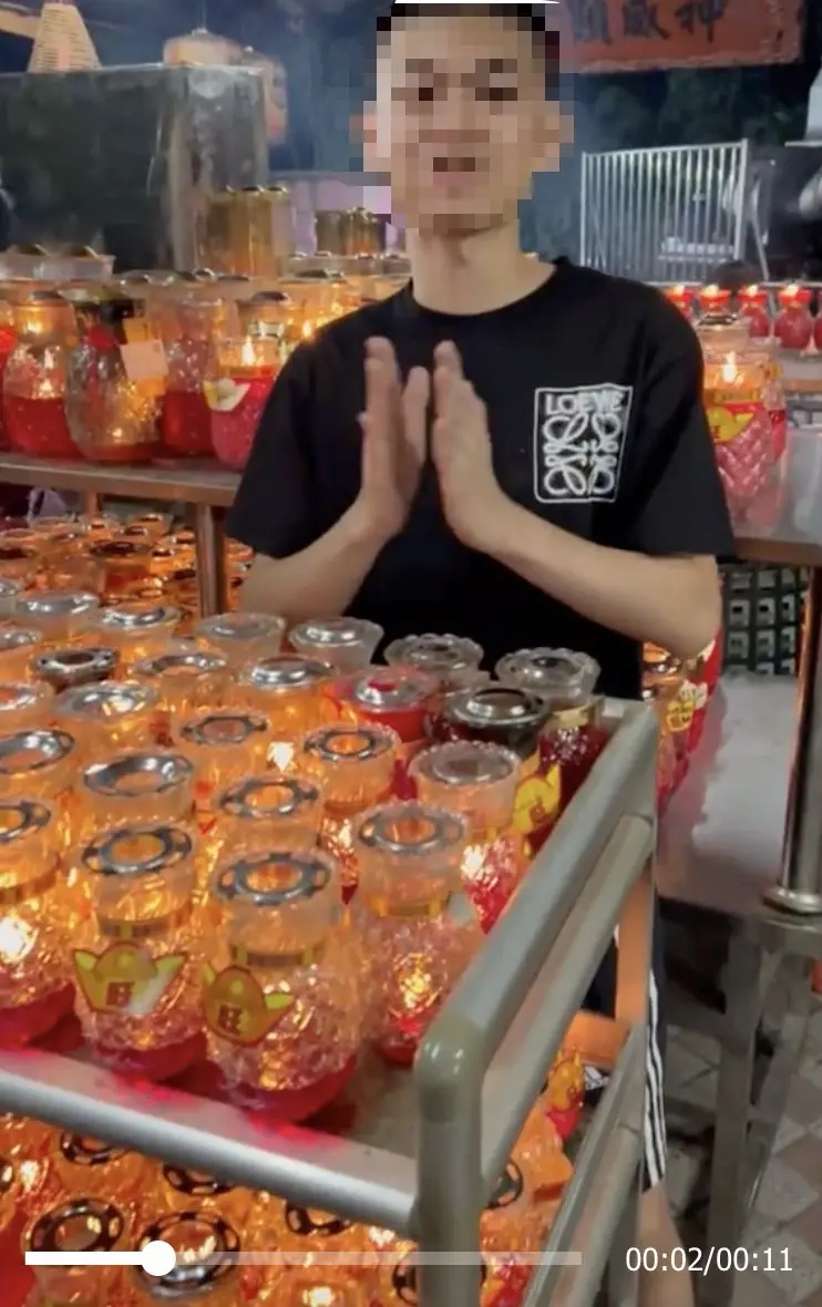 ▼男子在影片中說:「謝謝大家來參加我20歲生日,祝大家都身體健康、平安快樂。」他說完後低頭吹燭火,儘管燭火最終沒有被吹熄,但這一舉動還是引起了許多網友的議論和批評,大家紛紛留言說:「空安就是說你這種的」、「在廟裡不能用吹的」、「這樣好玩嗎?」、「蠻白X的」、「真敢、有點狠」。