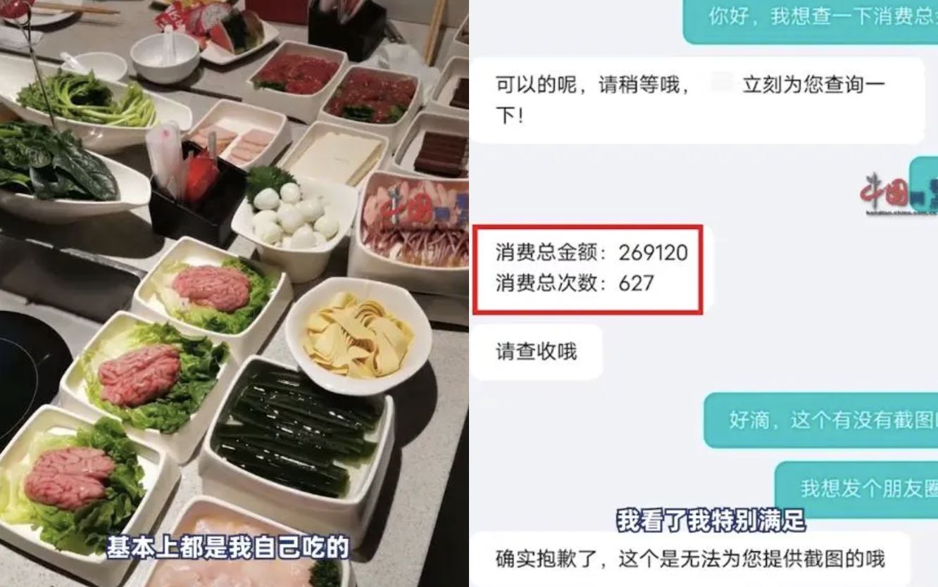 這名女子表示,自2014年11月底成為海底撈的會員以來,她已經連續9年多在這家連鎖店用餐。多年來她的總消費次數達到627次,累積消費金額高達269120元人民幣。這一金額讓她自己都非常驚訝,不過她表示,未來還會繼續在海底撈用餐。