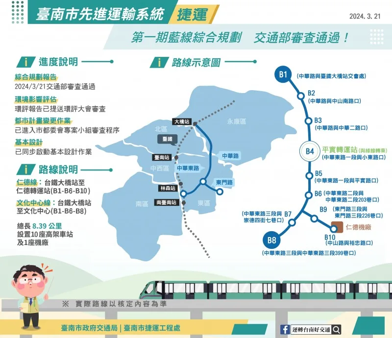 台南要有捷運了!第一期藍線預計2026年動工 最快通車時間曝