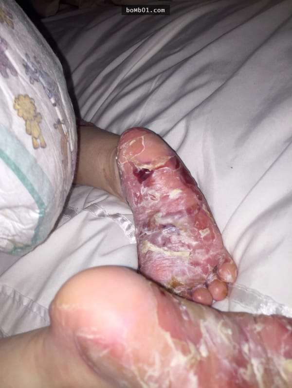 ▼Danni帶著女兒到處求醫,最後孩子被確診為遺傳性表皮分解性水疱症,也就是泡泡龍。患有這種病的人皮膚非常脆弱,稍微磨擦就破皮,形成水皰或血皰,嚴重者甚至口腔、舌頭、食道、腸胃等黏膜部位也會出現水皰,阻塞進食,致營養不良、皮膚變形、肢體萎縮,甚至產生皮膚癌