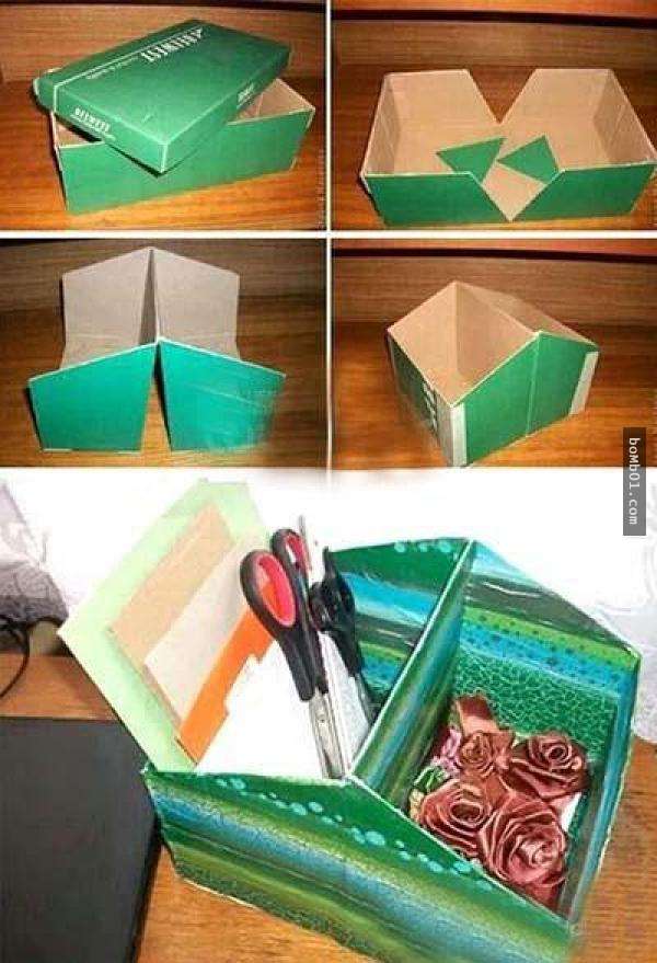 沒想到鞋盒竟然還有這麼多意想不到的功能,只要動手改造一下就可能得到很多實用的收納盒,如果再稍微用些巧思裝飾一下鞋盒的外觀,還能成為既實用又美觀的裝飾品,尤其對於家裡有小朋友的父母來說更可以省下很多買玩具的錢,以後可千萬別把鞋盒丟掉了!
