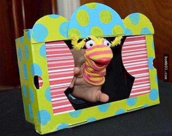 ▼用鞋盒做成的小劇院裡頭講故事個小朋友聽吧!
