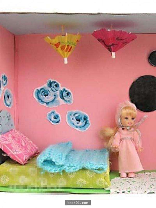 ▼家裡有小朋友的人也可以把鞋盒改造成給洋娃娃住的房子。