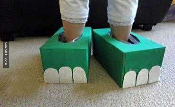 ▼把鞋盒改造成大鞋子給小朋友穿一定很好玩~