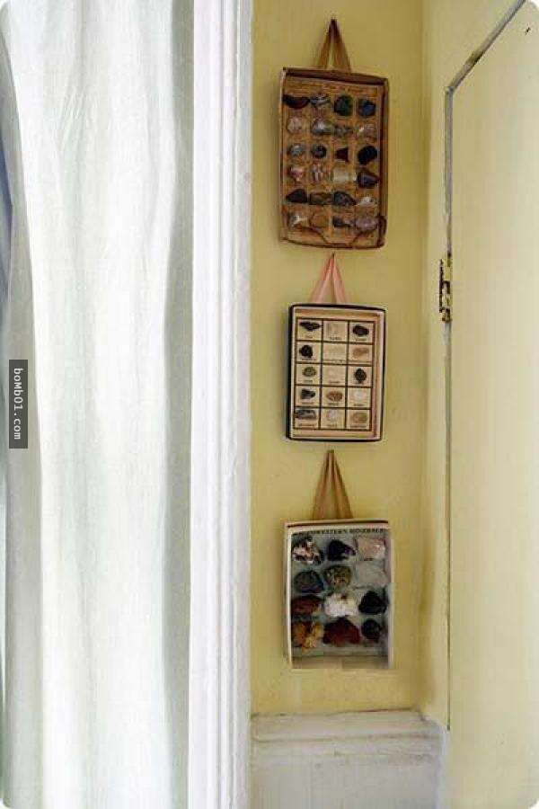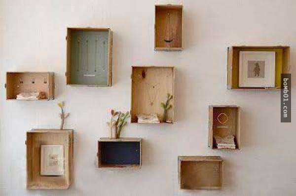 ▼將鞋盒貼在牆上就變成速成的展示架!