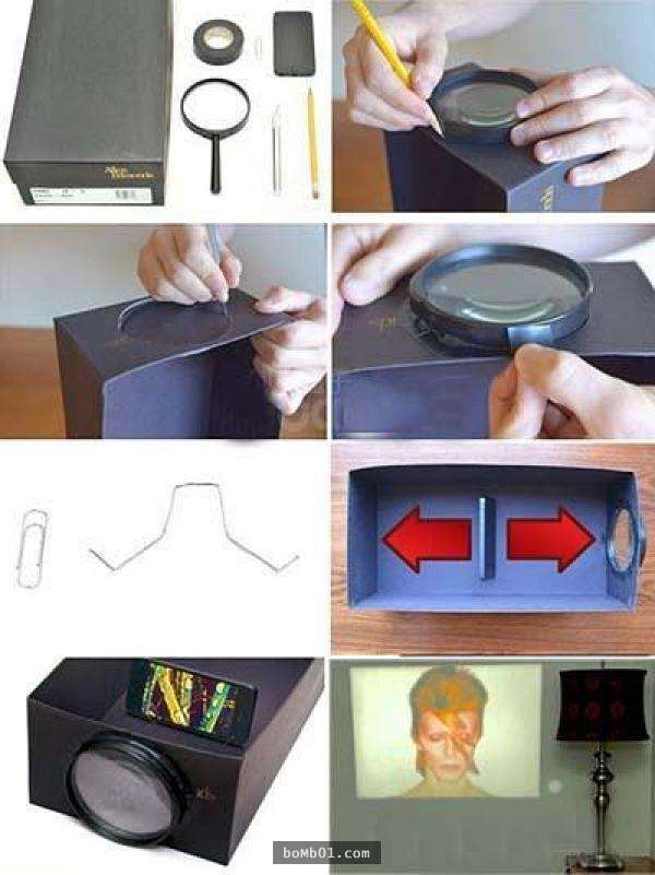 ▼喜歡3C的人則可以將鞋盒改造成幻燈機,非常簡單,只要在鞋盒上加上個放大鏡就行了。