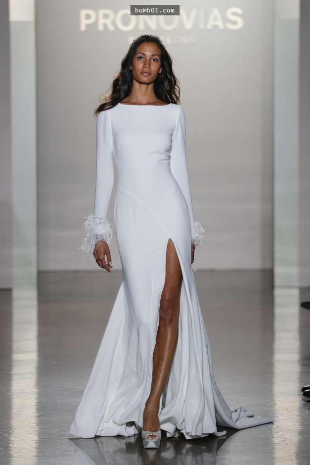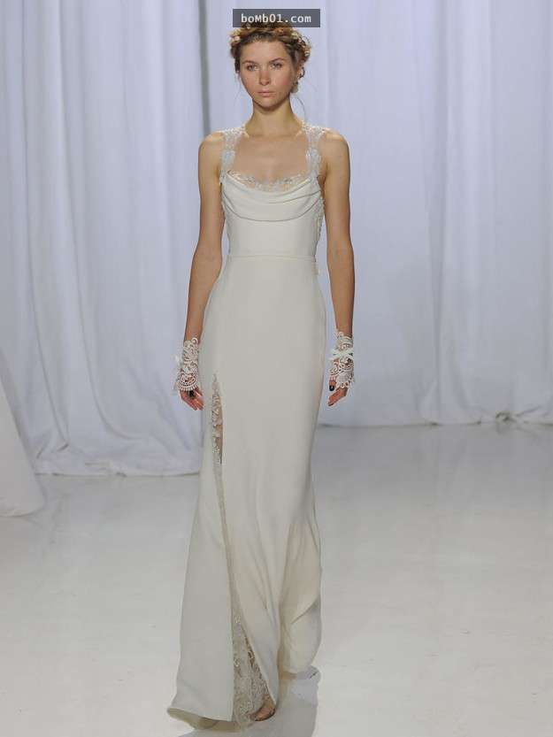 ▼Remm Acra從1995年專注于婚紗的設計,這一款修身的婚紗在肩部和手部的設計更是獨創性的。