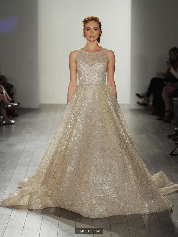 ▼如果你對香檳色情有獨鍾,這款Lazaro推出的香檳色婚紗一定不能錯過。