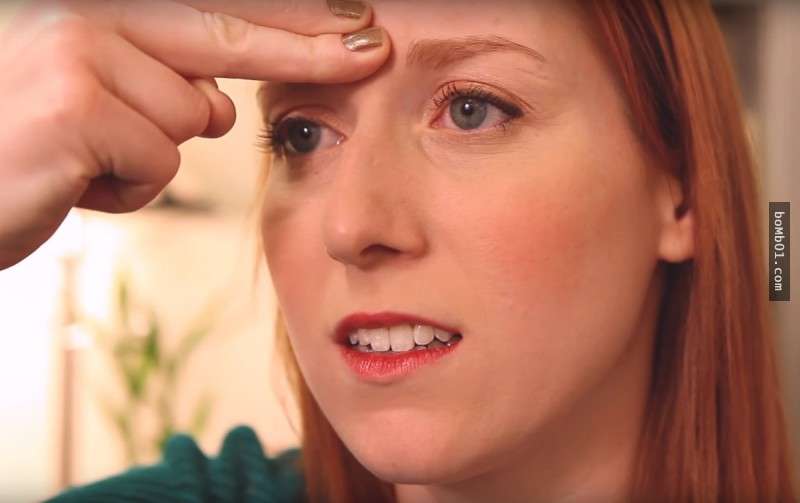 ▼步驟二:舌尖一放鬆,大家就必須立馬用食指和中指輕點雙眉之間的位置,稍微施壓。