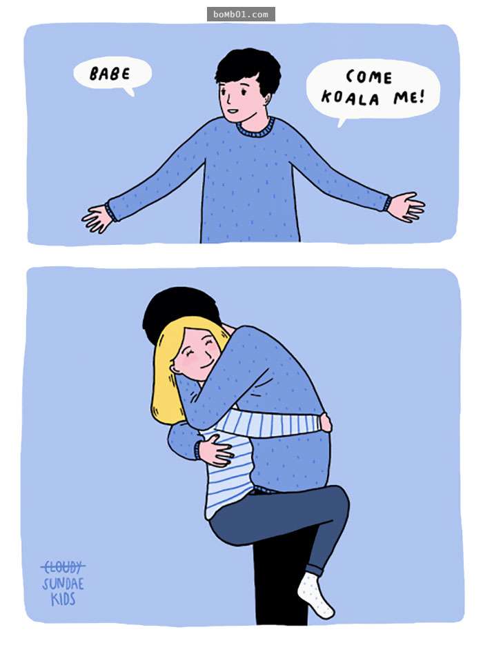 ▼1. 男:寶貝,給我一個無尾熊那樣的大擁抱!