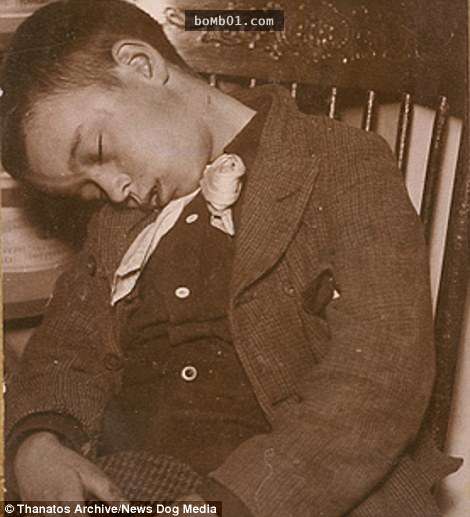 ▼當然,為死去的家人拍照不一定只針對兒童,只是當時因傳染病突然死亡的絕大多數都是兒童。下面照片中的男子,額頭上還留有疑似彈孔的痕跡。