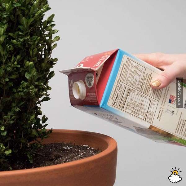 ▼8. 澆花:牛奶中的鈣會讓植物更加強壯,茄科植物會長得更壯。不過澆花的時候要稀釋一下。