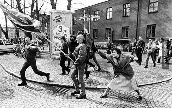 戴紐塔女士是波蘭跟猶太人的後裔,她的母親是經歷了納粹集中營的倖存者。1985年,瑞典的韋克舍(Vaxjo)舉行了一個「新納粹集會」,她憤怒地跑到一個遊行者的身旁,並用包包打他,這個畫面也因此成為經典。戴紐塔女士則在三年後過世。