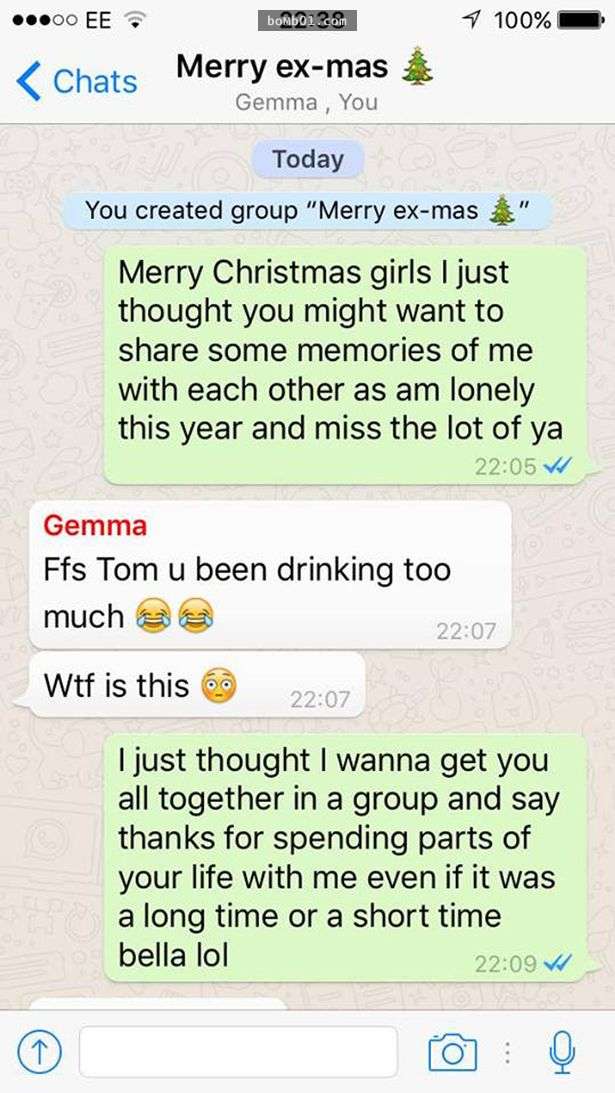 他特別開了一個「前女友們群組」祝福大家聖誕快樂,最後的超展開結局簡直是聖誕奇蹟啊!
