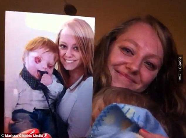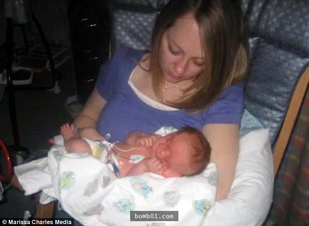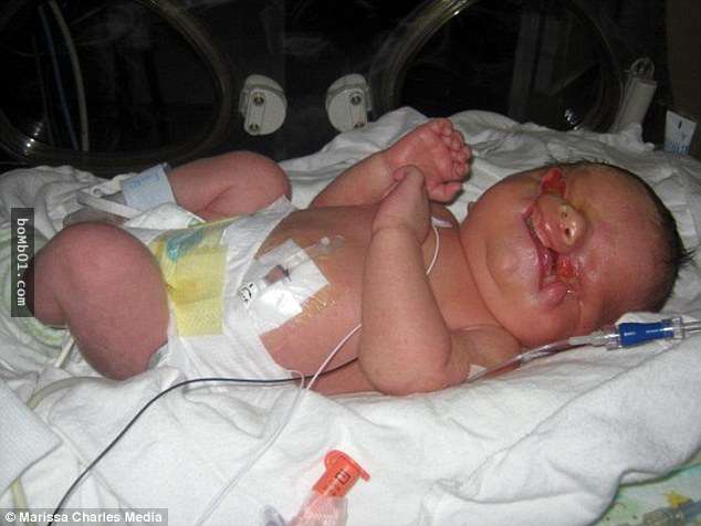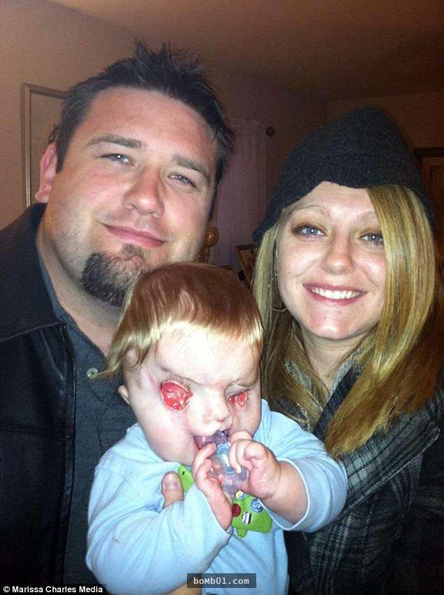 ▼醫生告訴他們,這個孩子有羊水帶症候群。這種情況非常罕見,孕婦羊膜破裂的話,破裂處會產生一條帶狀組織,不管它卡在寶寶的哪個部位,都會造成嚴重的影響。Lacey的寶寶面部被破壞,出生後可能失明。