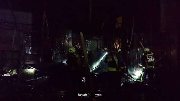 ▼著急的蔡男便開著小山貓往房間撞擊,卻被木板擋住,無法破門而入。此時消防局早已出動12輛消防車到現場搶救,蔡男連忙向他們求助,告知妹妹還在屋內;但此刻鐵皮屋已全面燃燒,火勢非常嚴重,消防員聯手撲滅火焰後,才好不容易進到房間。