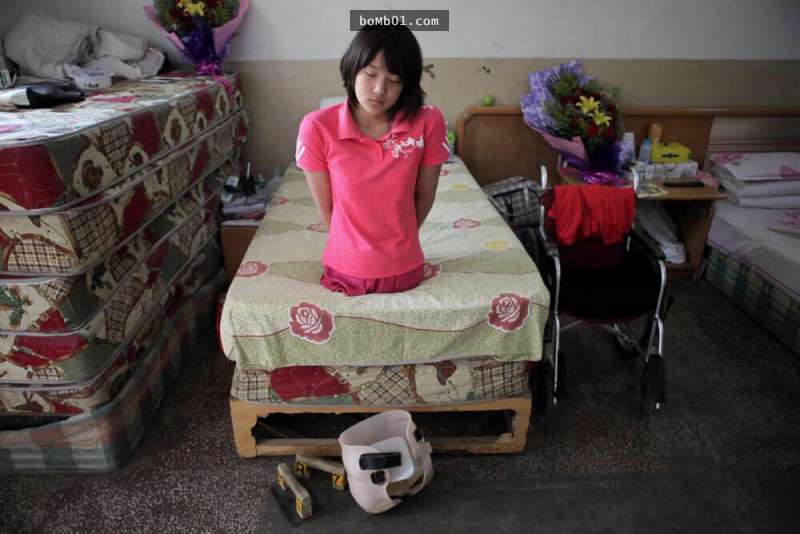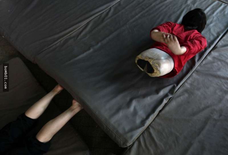 ▼2000年10月,錢紅顏不幸遭遇車禍。對於這個年僅4歲的孩子,這一切就像一場噩夢。雙腿截肢的她沒有足夠的醫療費安裝假肢,就靠著爺爺給她安在盆骨上的半個舊籃球和一幅木頭手墊,開始了艱難的殘疾生活。