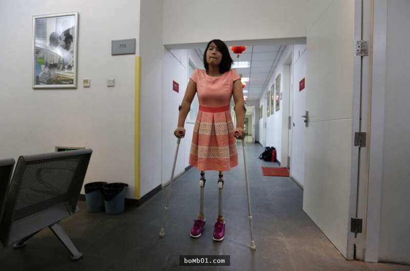 ▼2014年,她終於擁有了一幅假肢,這讓她可以擁有正常人的身高,1.64的她看上去非常的適應。