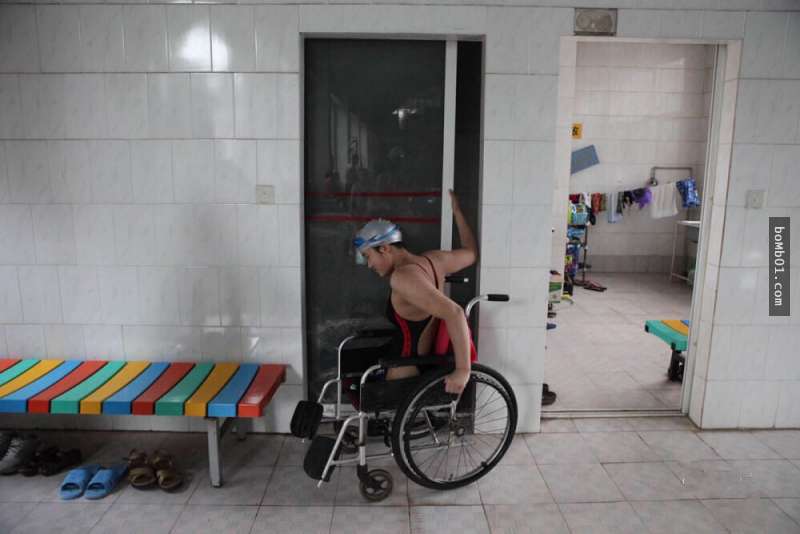 ▼沒有下半身的支撐,把握平衡也是一件不容易的事。為了增強腰腹力量,每天都要做上百個俯臥撐、仰臥起坐,還有不斷的器械訓練加強力量。