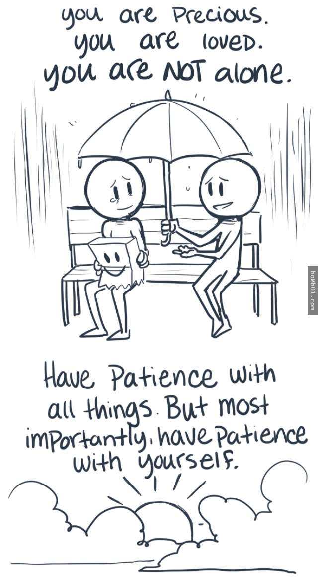 ▼記住,你是珍貴的,你是被人所愛的,你並不孤單。對世界抱持著耐心吧,更重要的是,對自己要有耐心。