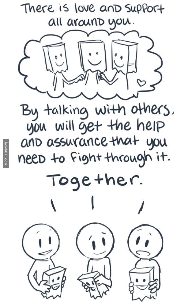 ▼你身邊其實都環繞著愛與支持,藉由跟那些愛你的人吐露心聲,你會得到戰勝憂鬱的力量,而且可以共同努力前進。