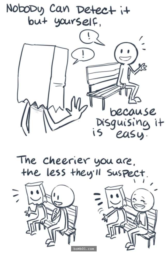 ▼除了患者本身,沒人能發現這樣的偽裝,畢竟要隱藏自己實在是太容易的一件事了。當你呈現得越是歡欣鼓舞,就更難有人去懷疑。
