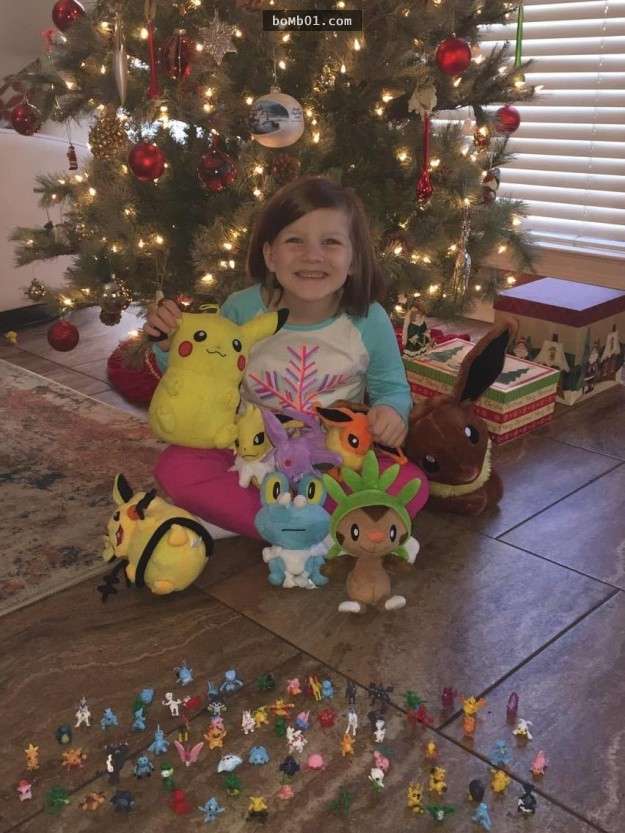▼他們告訴女兒,小精靈把這件事告訴了聖誕老人,他決定中途拿走這些玩偶,等到聖誕節早上再送過來。那天早上看到夢寐以求的寶可夢玩偶時,Ashlynd非常開心,忍不住說:「這是聖誕老人給我的!我訂購後他送來給我!」