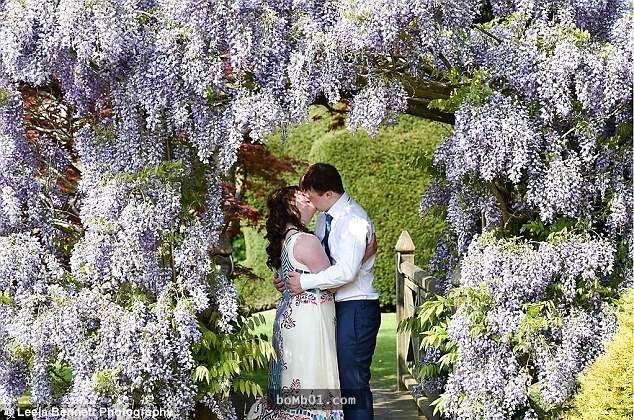 ▼他們想要讓這場婚禮充滿節日氣氛,所以做了很多努力。花下擁吻就像電影中的情節。