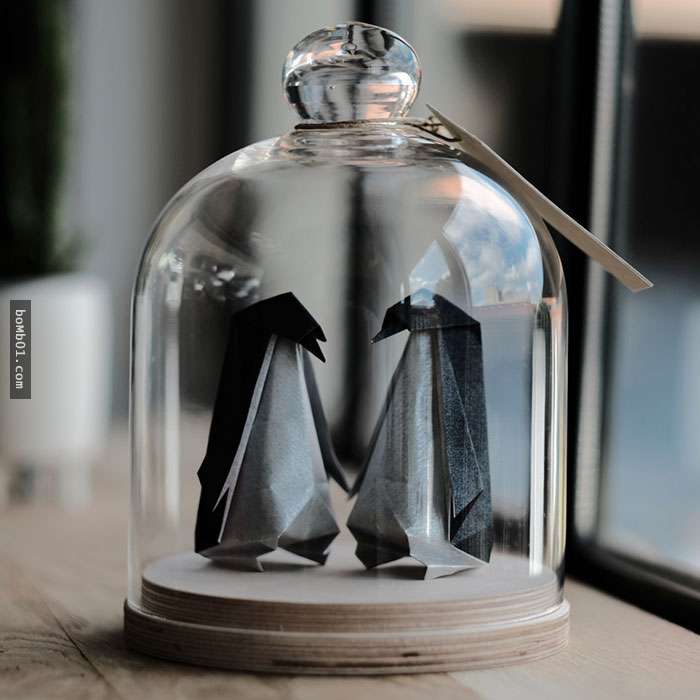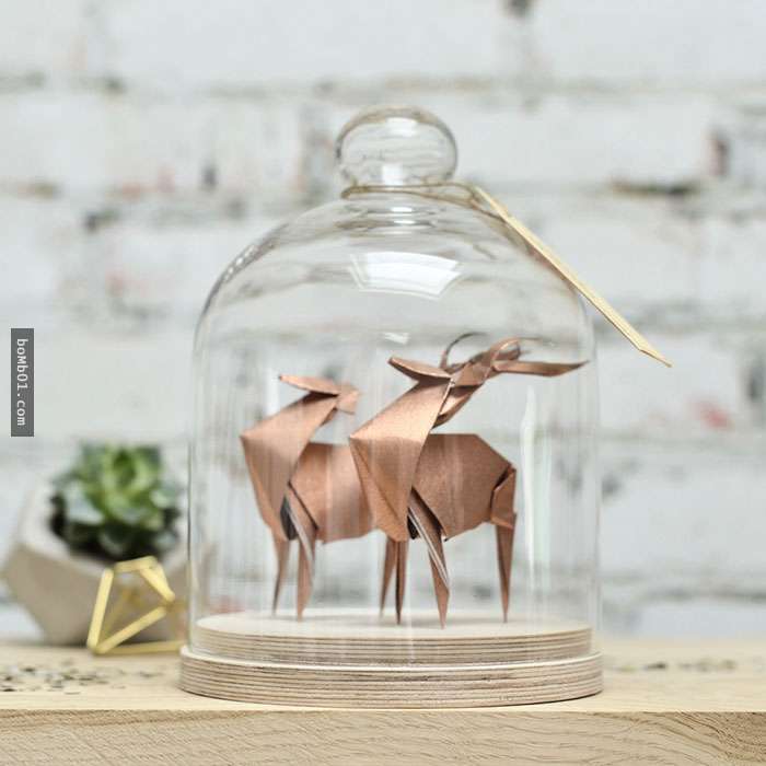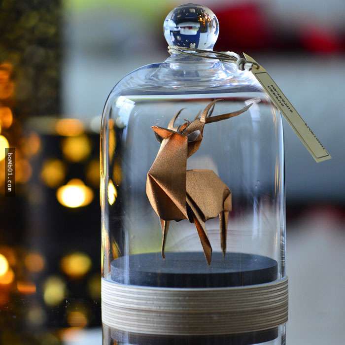 如此多的惟妙惟肖的動物,都是通過一雙巧手製作出來,變換成各種造型。在顏色的選擇上,不論是白色、金色還是黑色,都賦予獨特的傳統味道。現代藝術與傳統紙張工藝的完美結合,讓這些人類的智慧財富一代代流傳下去。如今有了這些玻璃罩,想要保存多久都不擔心了。如果你也喜歡這些摺紙藝術品,趕快分享給朋友們一起欣賞吧,真的是非常難得!