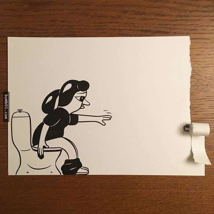 大部分藝術家都把紙張當成承載作品的工具,HuskMitNavn卻把它變成了作品的一部分。撕紙搭配線條,組合成的插畫從2D轉化為3D,效果非常棒。藝術果然需要創造力,將白紙玩出這樣的花樣,這位插畫家太厲害了。