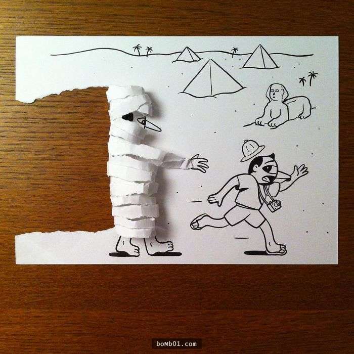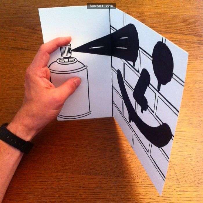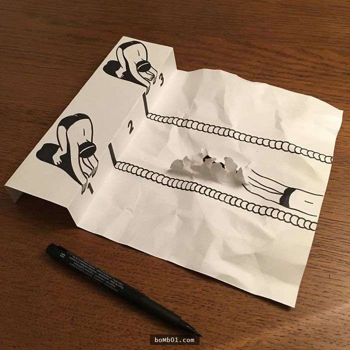 2017年01月05日如何讓2D的作品展現出3D的效果,對藝術家來說是巨大的考驗。丹麥插畫家HuskMitNavn就找出了答案。他在普通的白紙上作畫,然後將紙張彎曲、摺疊、揉搓,巧妙將它們轉化為3D作品。這種方法看似簡單,想要實現卻要花費一些心思。