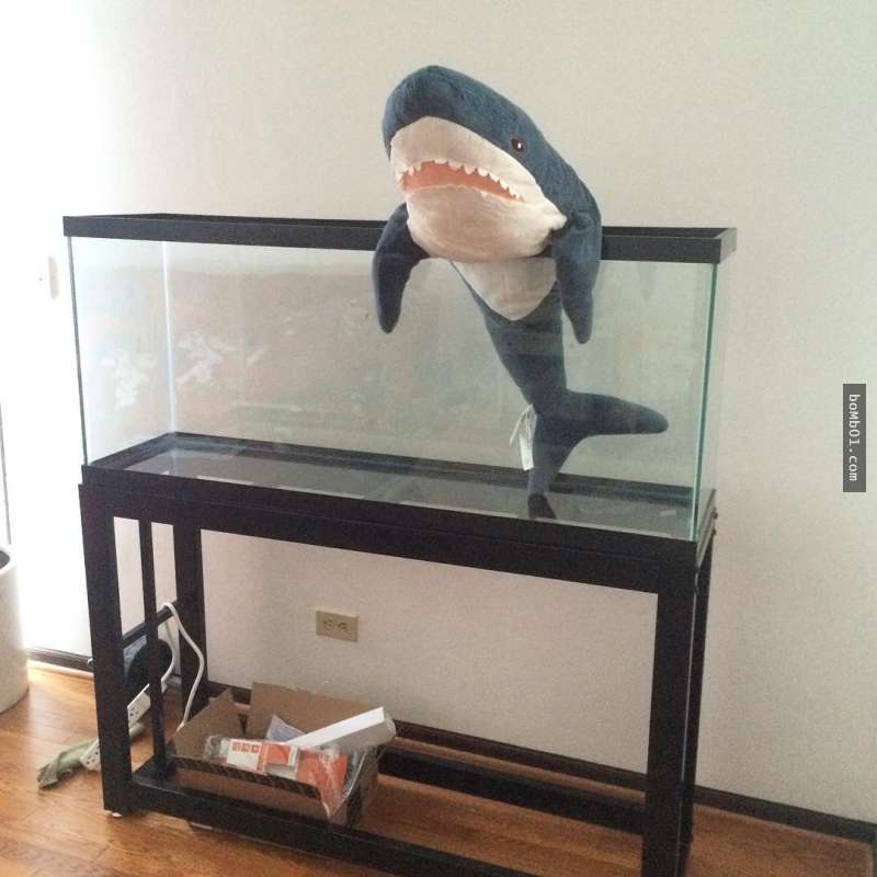 ▼直接把它放進魚缸裡,終於圓了養鯊魚的夢。