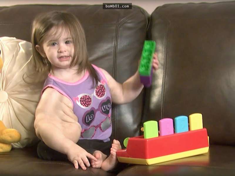 ▼Madison的媽媽懷孕5個月時,到醫院去做超聲波檢查,醫生發現孩子的右臂出現了異常的液體堆積,可能很難活下來。堅強的Madison順利出生,不過她的淋巴積液大概有1.3kg。