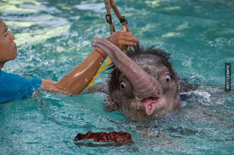 ▼這隻小象顯然不喜歡游泳,從牠的表情就能看出來。