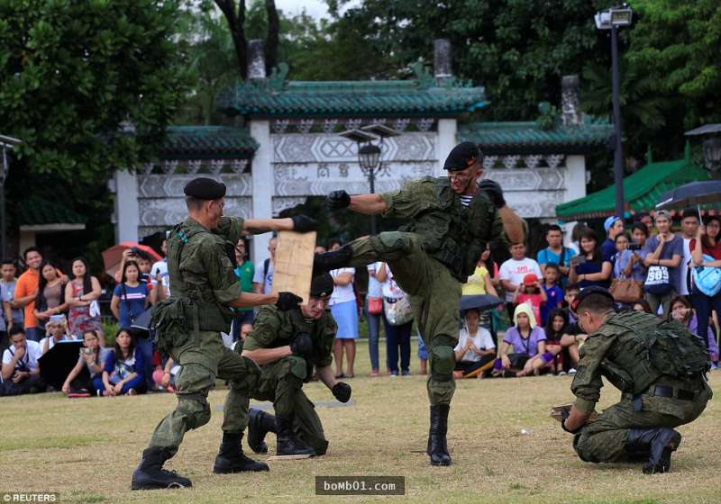 ▼一批訓練有素的俄羅斯海軍在馬尼拉Luneta國家公園中想當地民眾展示一系列格鬥技術!