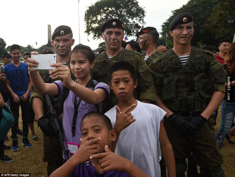 ▼雖然沒有成功完成所有表演項目,但菲律賓民眾看得非常盡興,表演結束後還爭先跟俄羅斯海軍們合照留影!