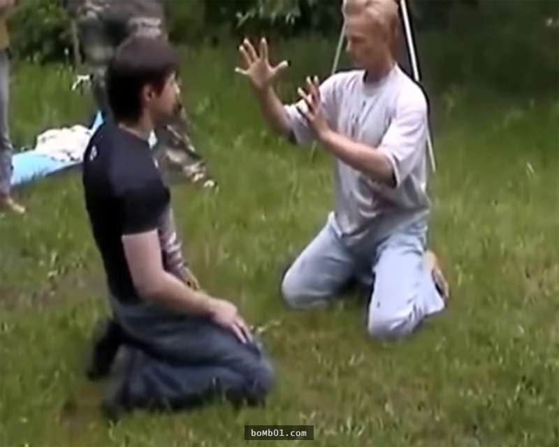 右邊的男子自稱練了「能量盾牌」挑戰武術高手打他,沒想到對方一出拳…靠杯笑到爛掉啊!