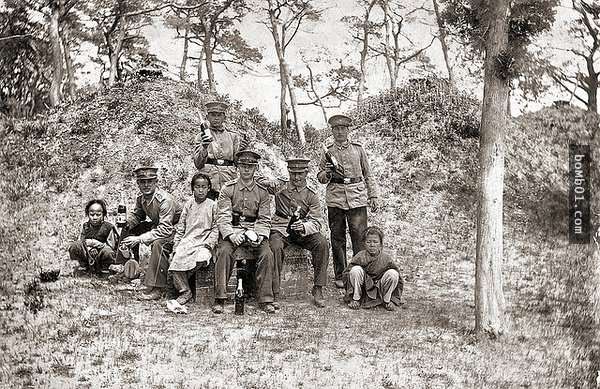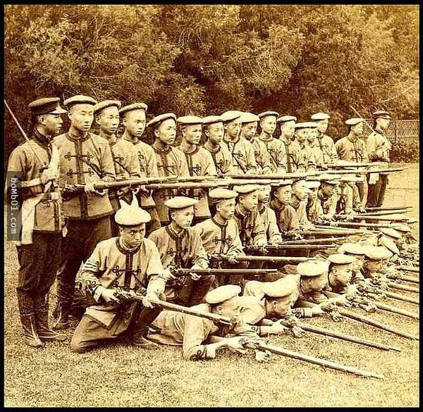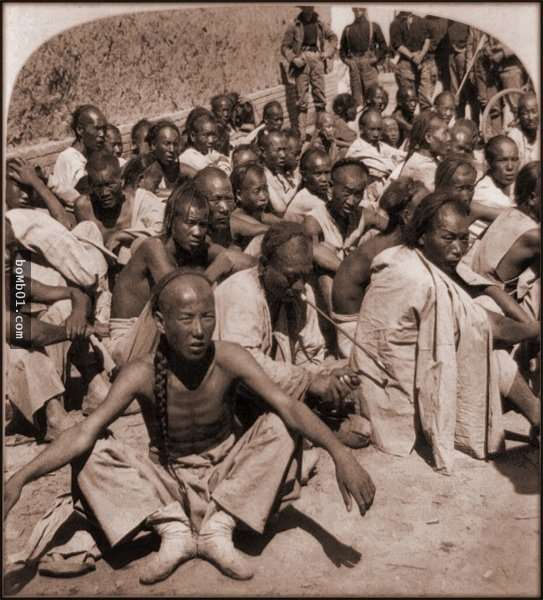 ▼官兵和被押解的犯人,犯人身上還帶著木枷