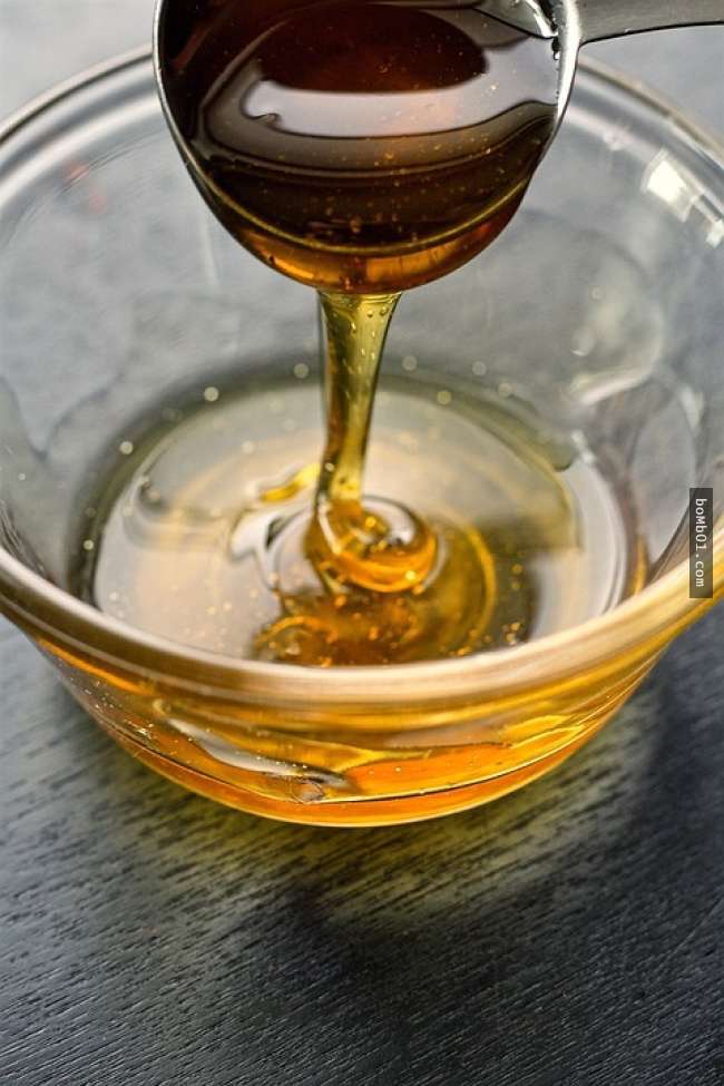▼把蜂蜜倒進黑色玻璃瓶中,蓋上蓋子保存。其他材質的瓶子會讓蜂蜜氧化,玻璃瓶則不會。保存得當的話,蜂蜜幾年都不會壞。