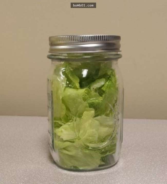 ▼把綠色蔬菜放入玻璃瓶中保存,葉子不會乾燥、枯萎。除此之外,洋蔥、大蒜等食材也能放進玻璃瓶保存,保鮮時間會延長。