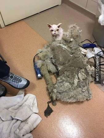 主人老了無法自理「連波斯貓也變了樣」,2公斤的毛盔甲剃掉後…大家都想哭了!