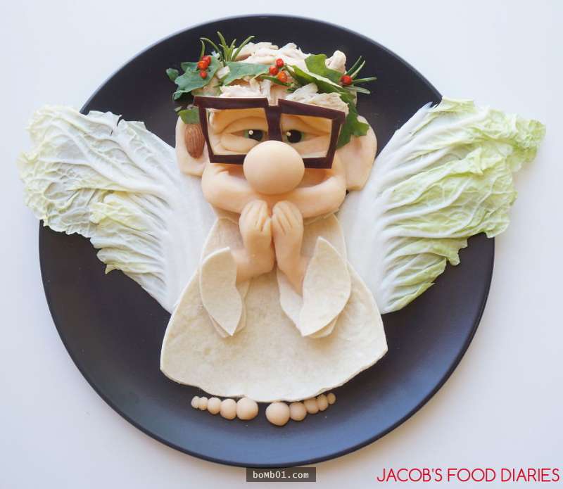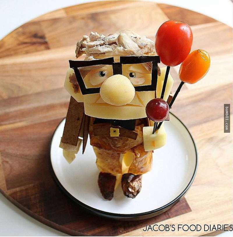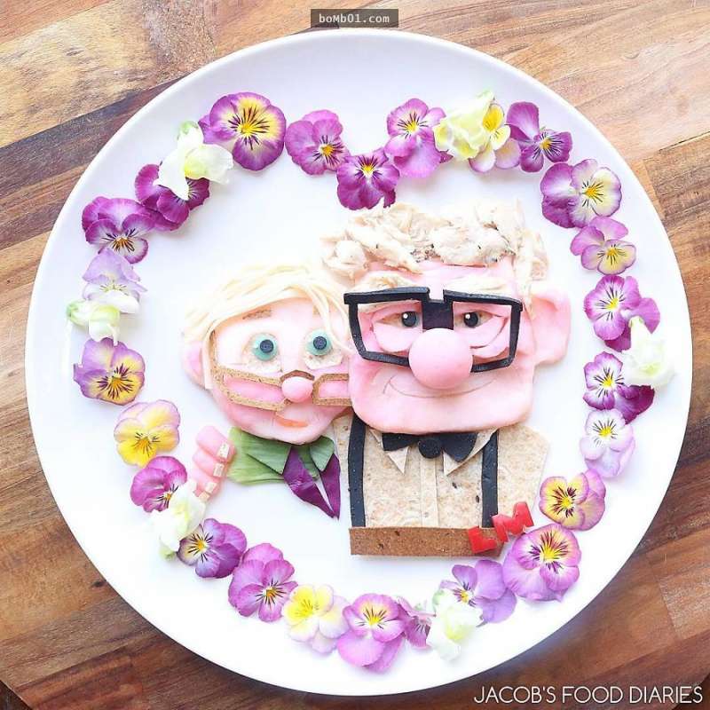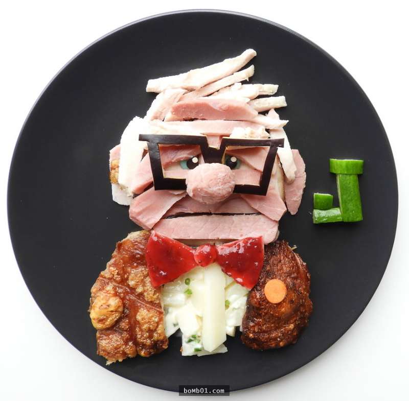 ▼《天外奇蹟》中的卡爾和愛麗:雞肉、馬鈴薯、麵條、可食用花等。