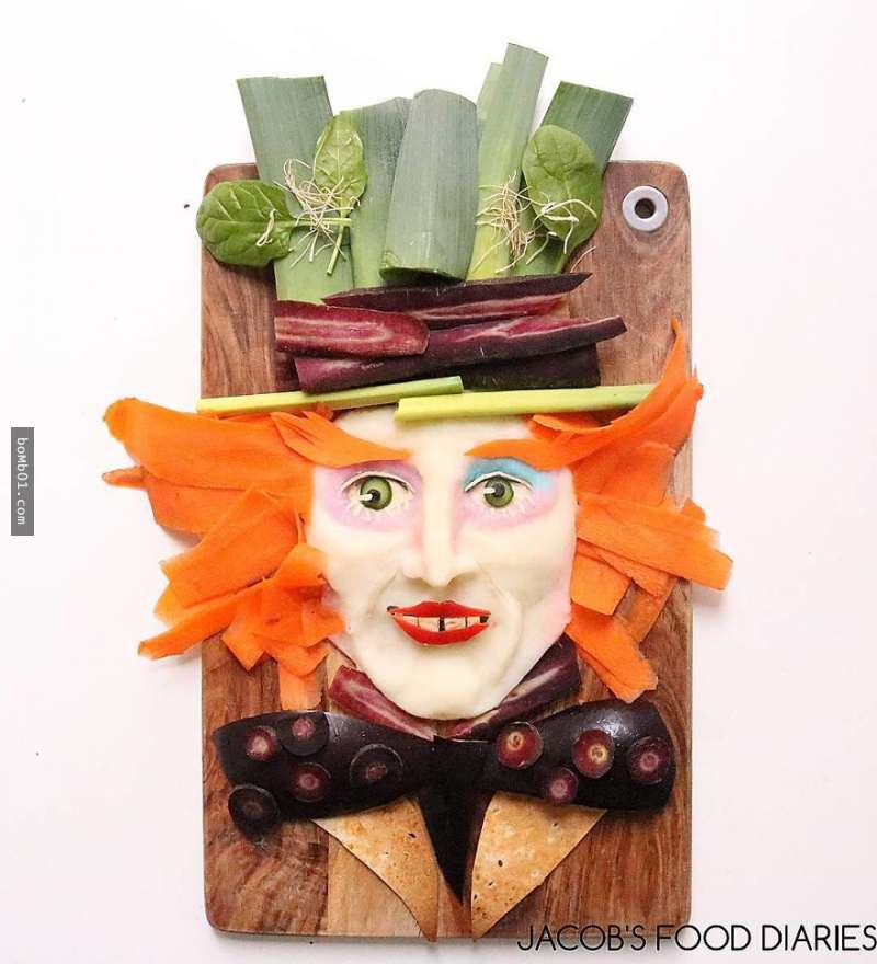 ▼《魔境夢遊:時光怪客》中的瘋狂帽客:馬鈴薯、胡蘿蔔、韭菜、茄子等。