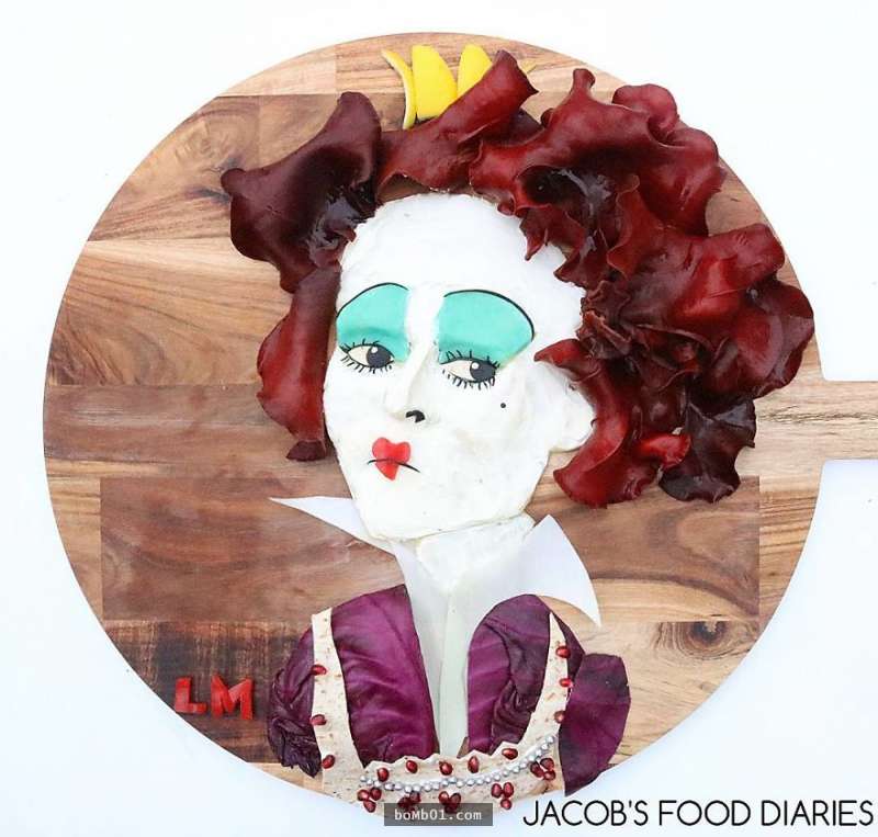 ▼《魔境夢遊:時光怪客》中的紅心皇后:奶油起司、韭菜、紫甘藍等。